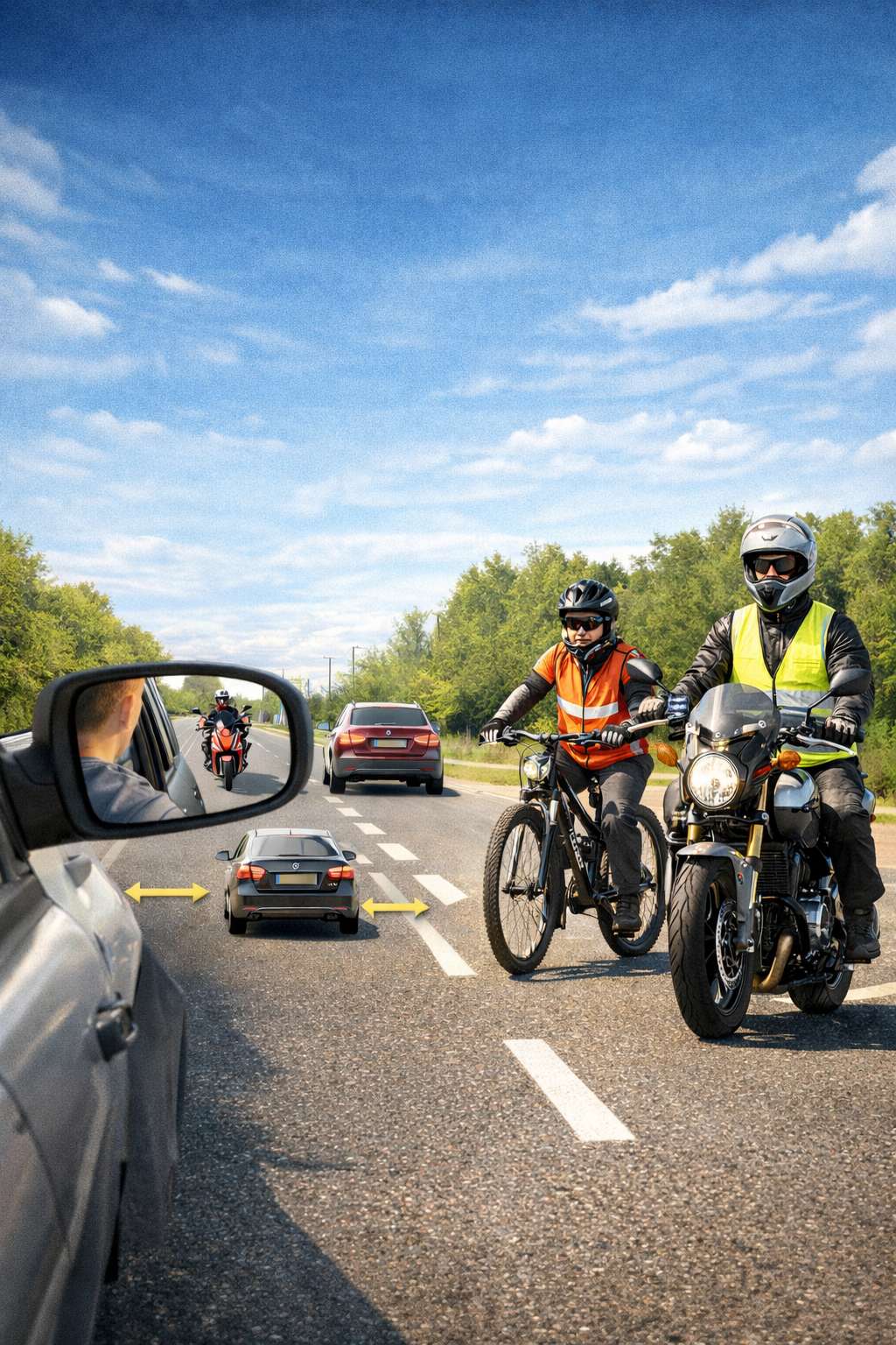 - Spójrz w lusterka dwa razy – jednoślad jest mniejszy i łatwiej go przeoczyć.