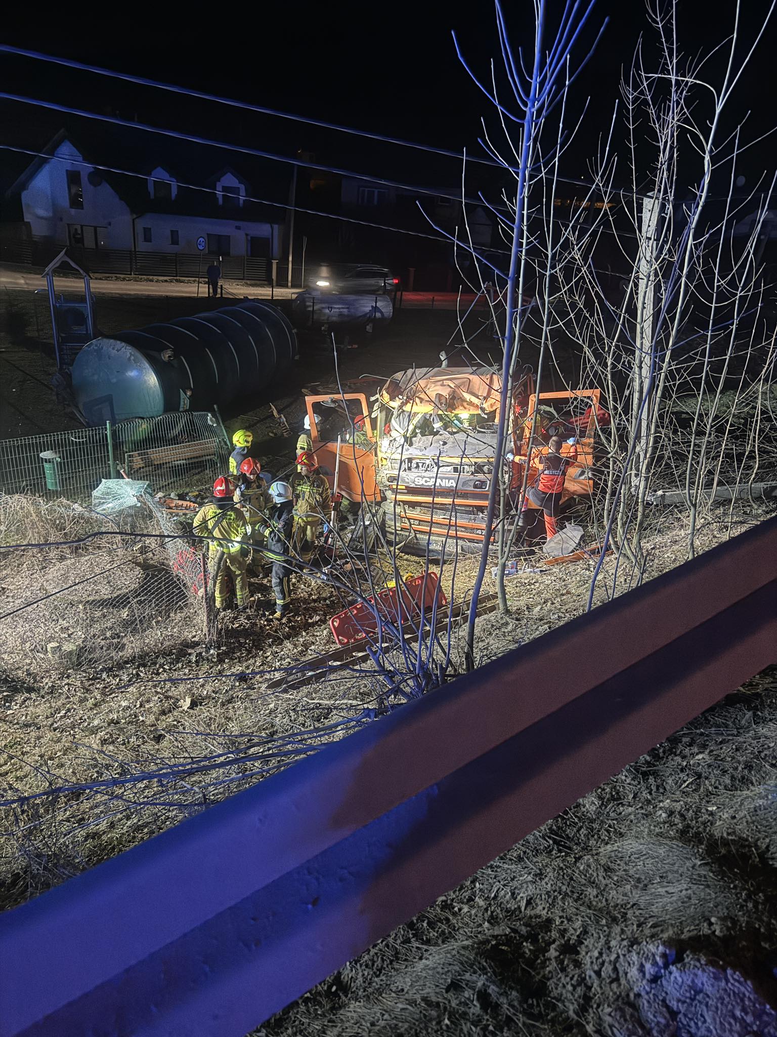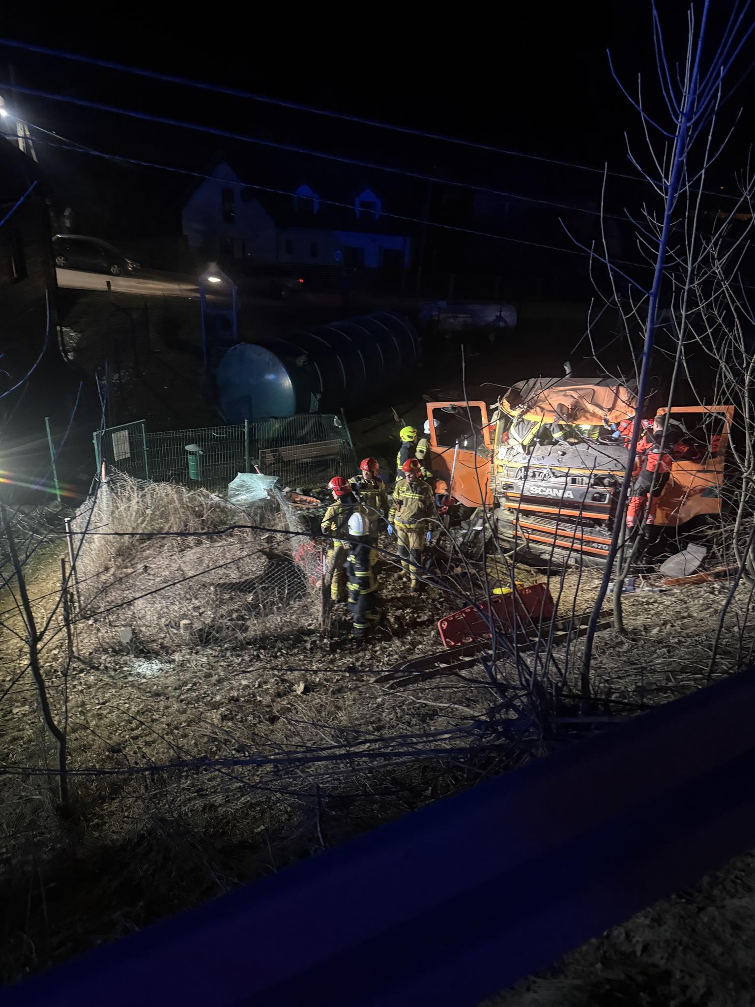 Do groźnego zdarzenia doszło w sobotni wieczór, około godziny 21:10 w Marcinkowicach (gmina Chełmiec, powiat nowosądecki). Z nieustalonych na tę chwilę przyczyn samochód ciężarowy – cysterna – wypadł z drogi i zsunął się z nachylenia terenu, zatrzymując się w trudno dostępnym miejscu poniżej jezdni.