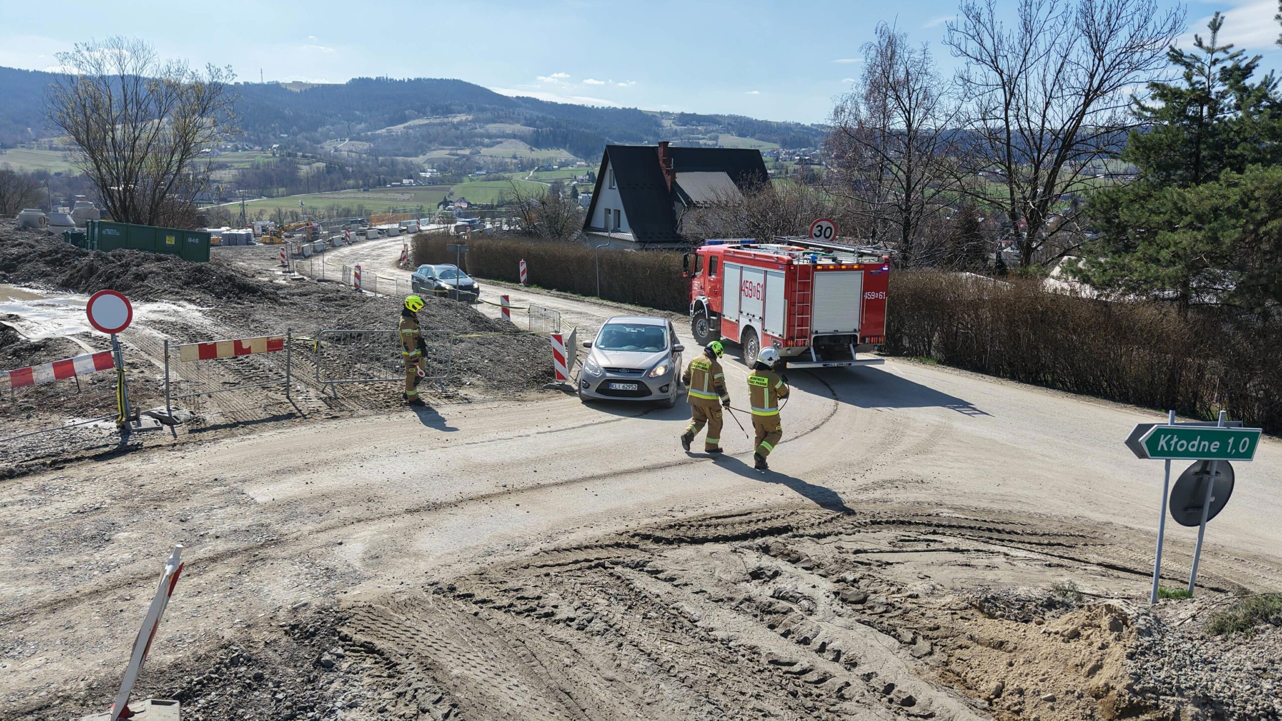 Zanieczyszczenie rozciągało się na odcinku od szkoły w Kłodnem aż do sklepu Żabka, stwarzając realne zagrożenie dla kierowców i pieszych. Strażacy zabezpieczyli miejsce zdarzenia oraz przeprowadzili neutralizację substancji przy użyciu sorbentu.