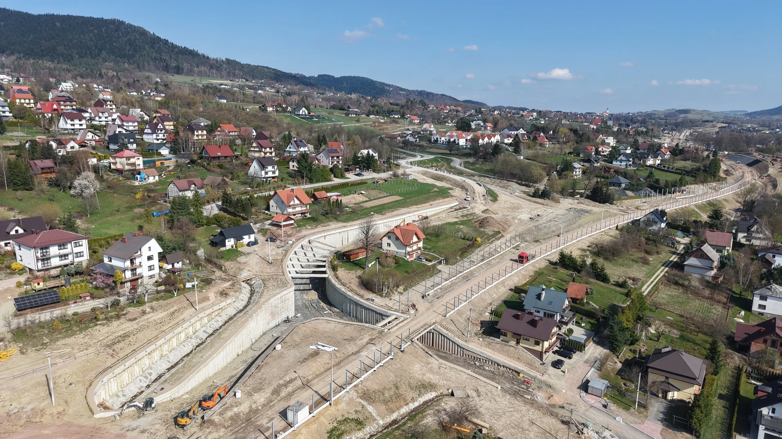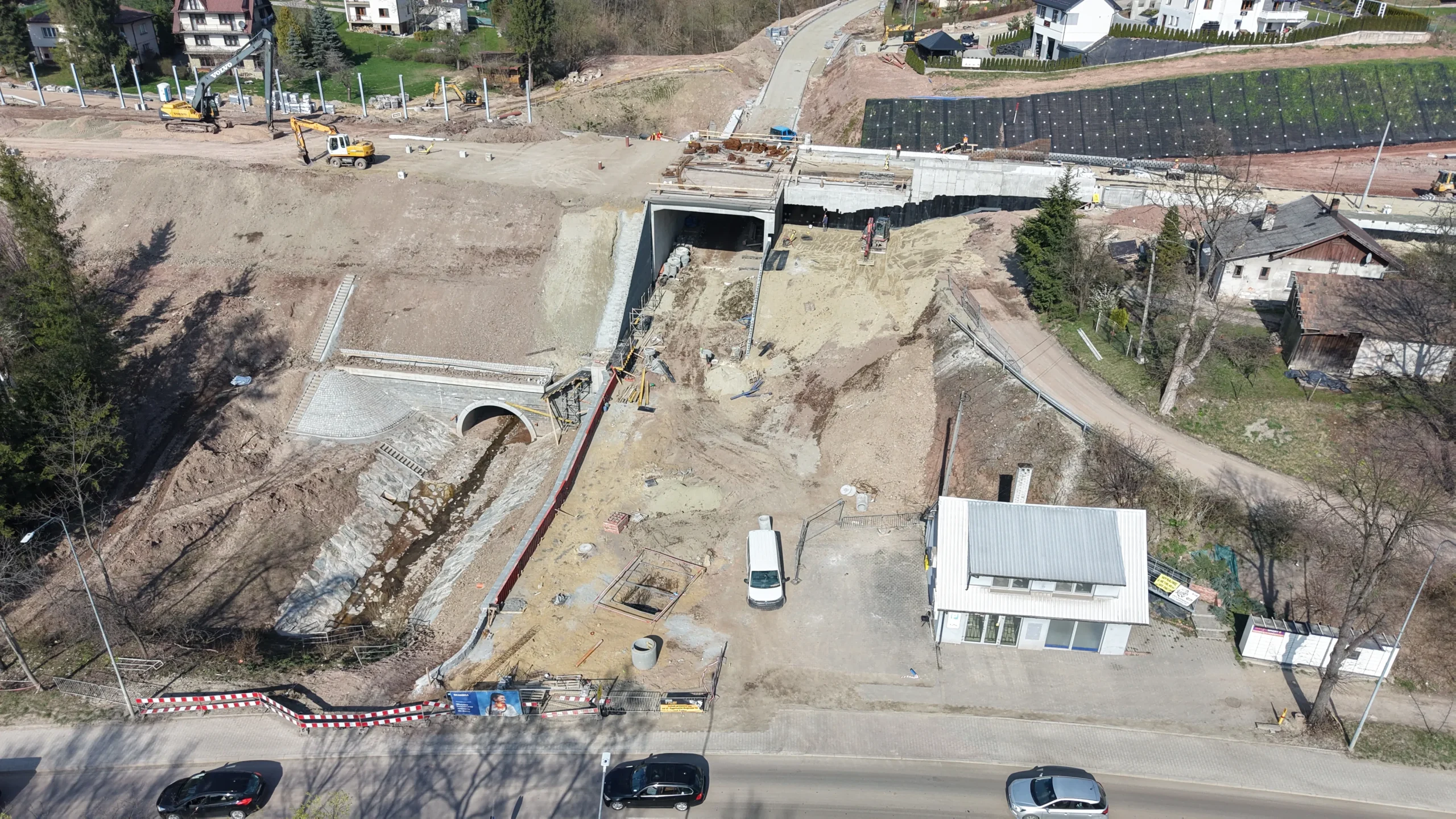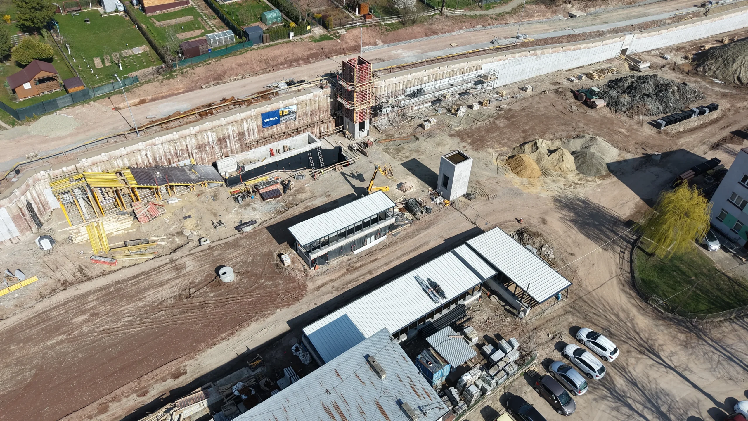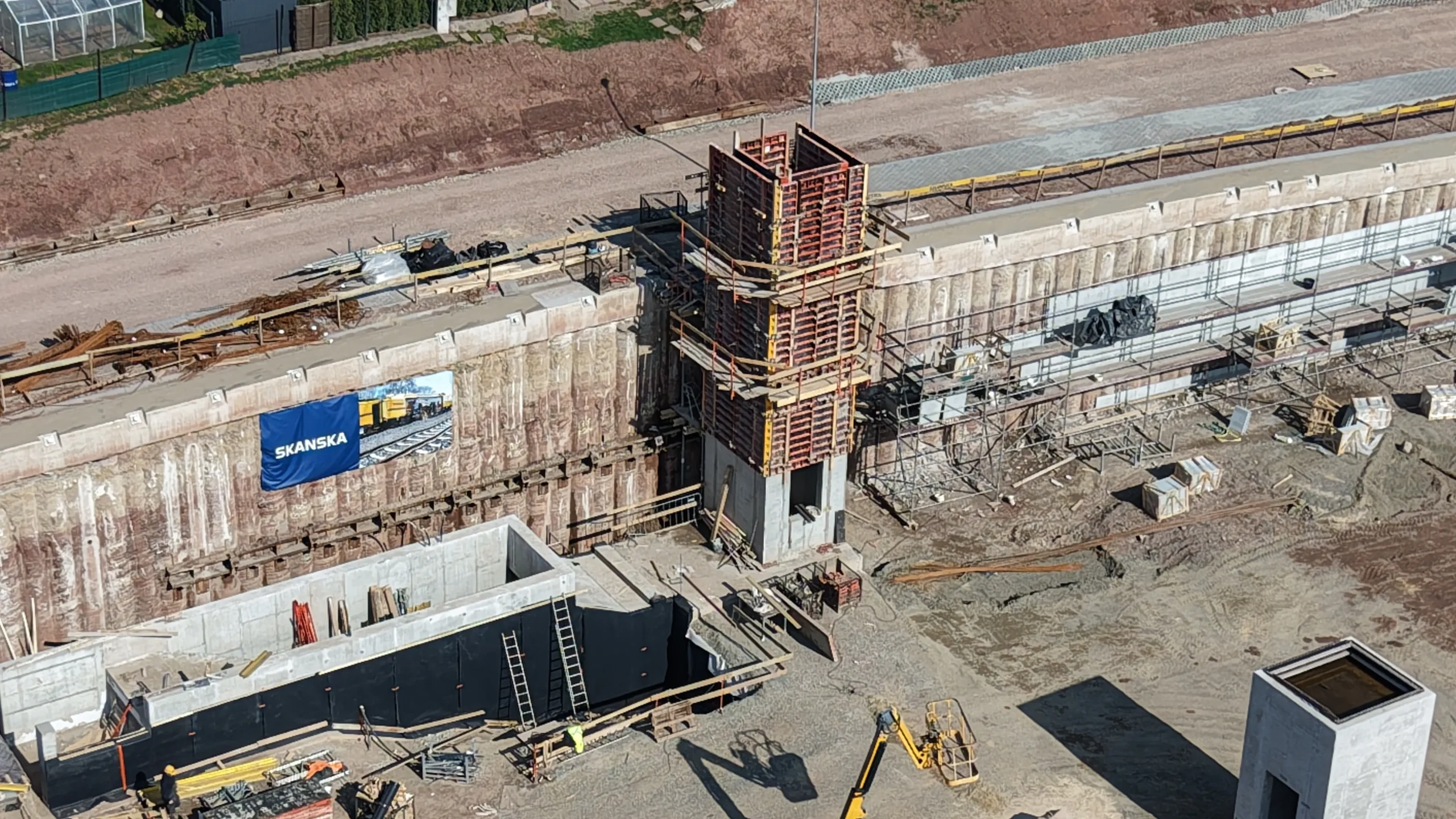 „Twoja podróż zaczyna się tutaj” – hasło SKANSKI widoczne na banerach budowlanych podkreśla znaczenie inwestycji dla lokalnej społeczności.
