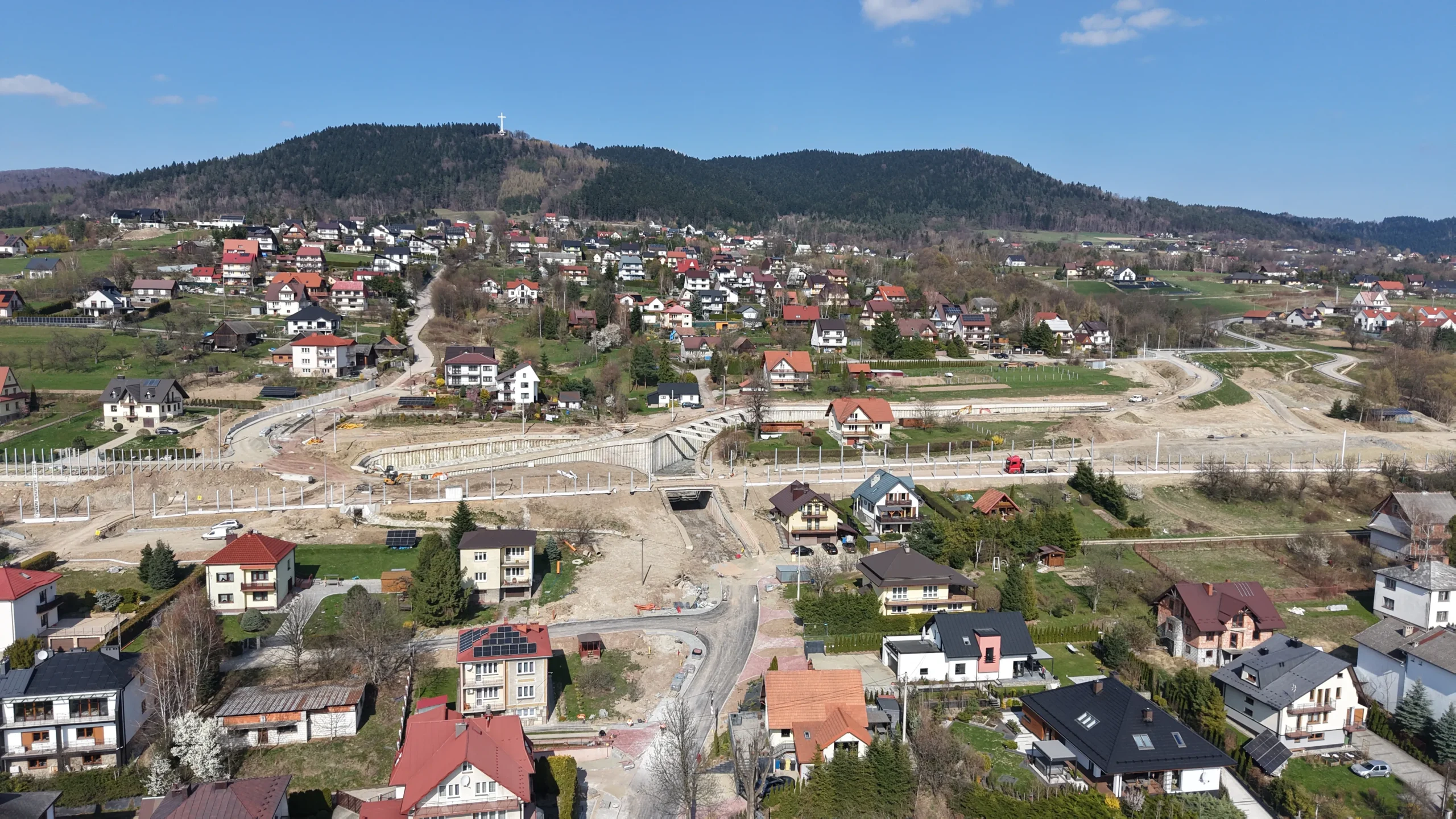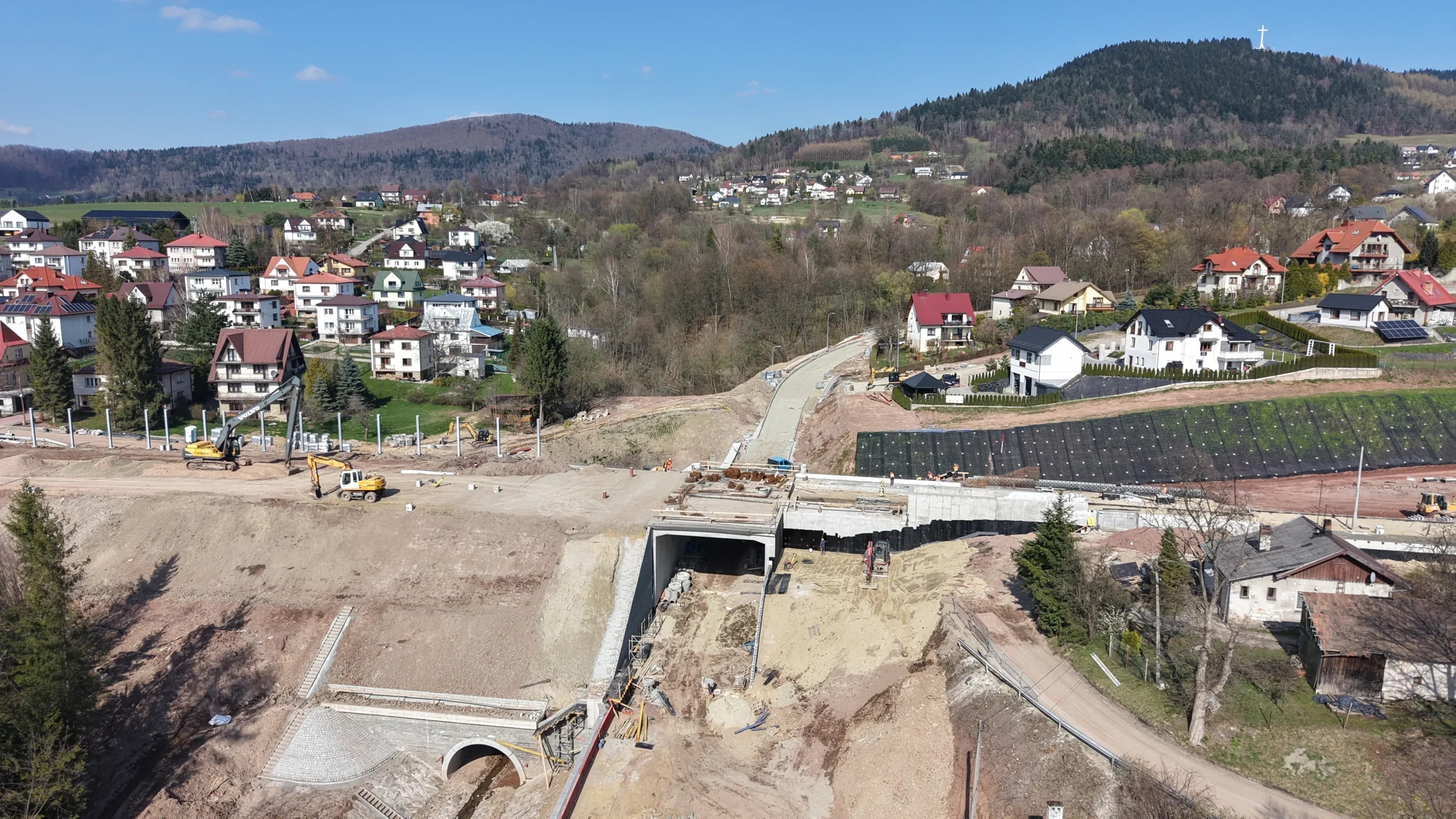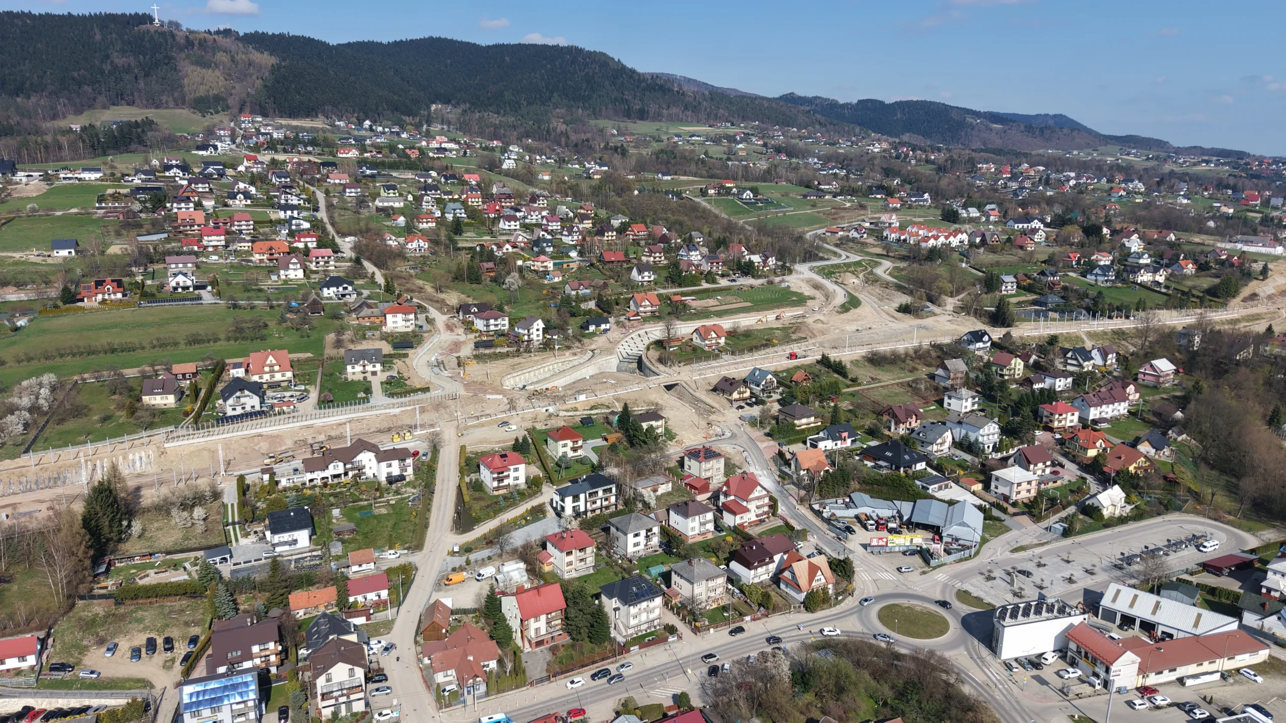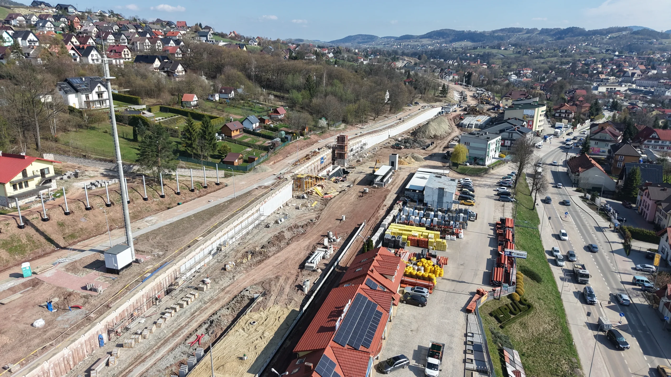 „Twoja podróż zaczyna się tutaj” – hasło SKANSKI widoczne na banerach budowlanych podkreśla znaczenie inwestycji dla lokalnej społeczności.