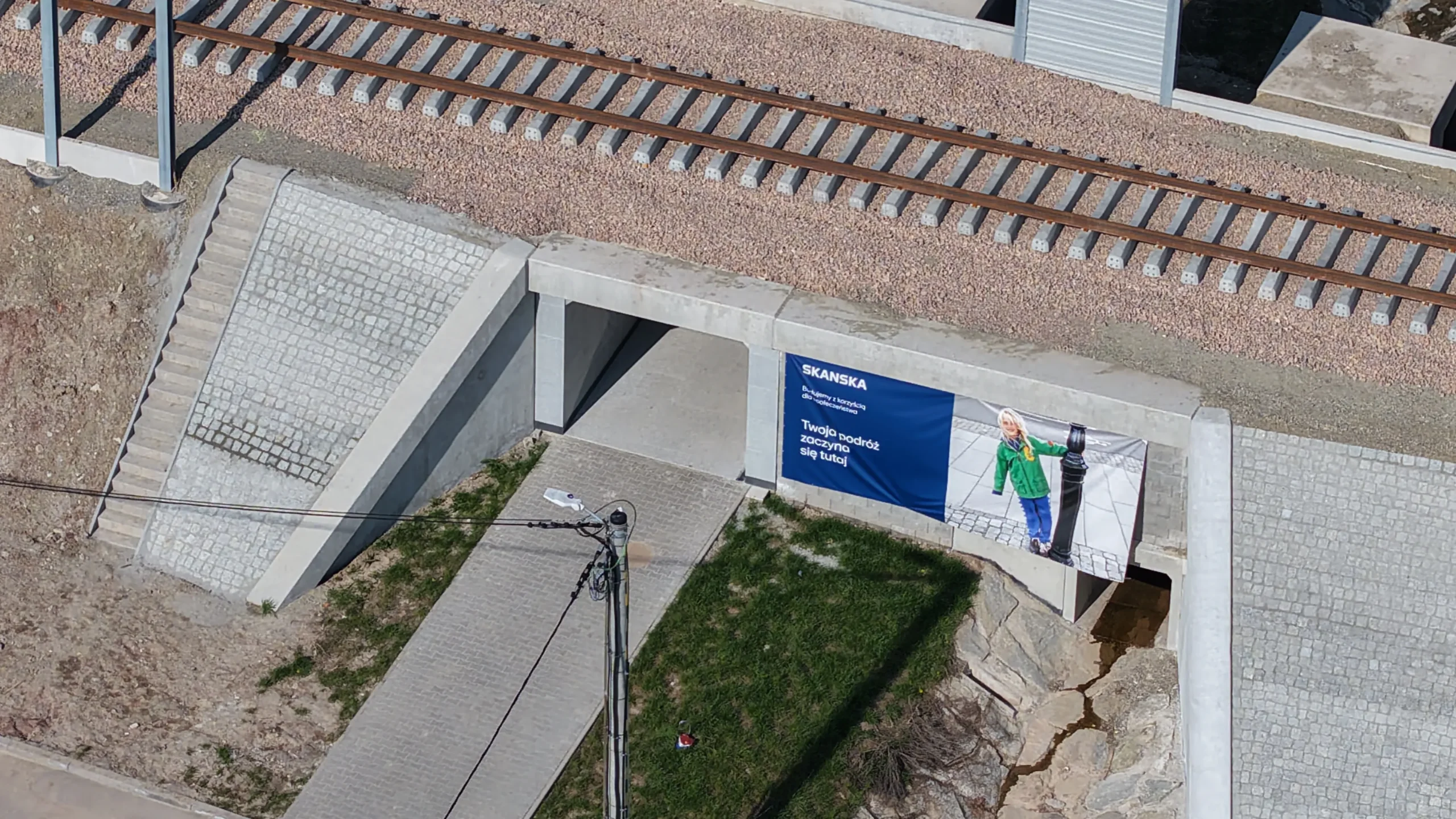 Przejścia podziemne dla pieszych – bezpieczne przejścia pod torowiskiem wyposażone w nowoczesną infrastrukturę, w tym oświetlenie i nawierzchnie z kostki brukowej