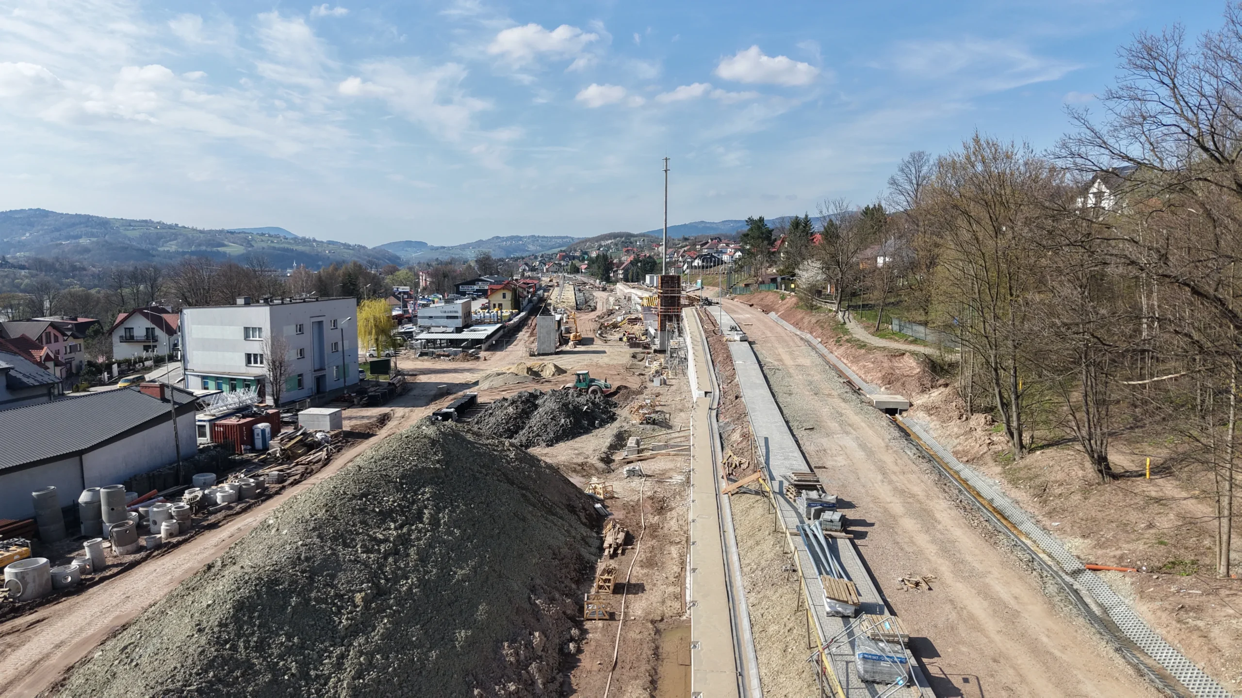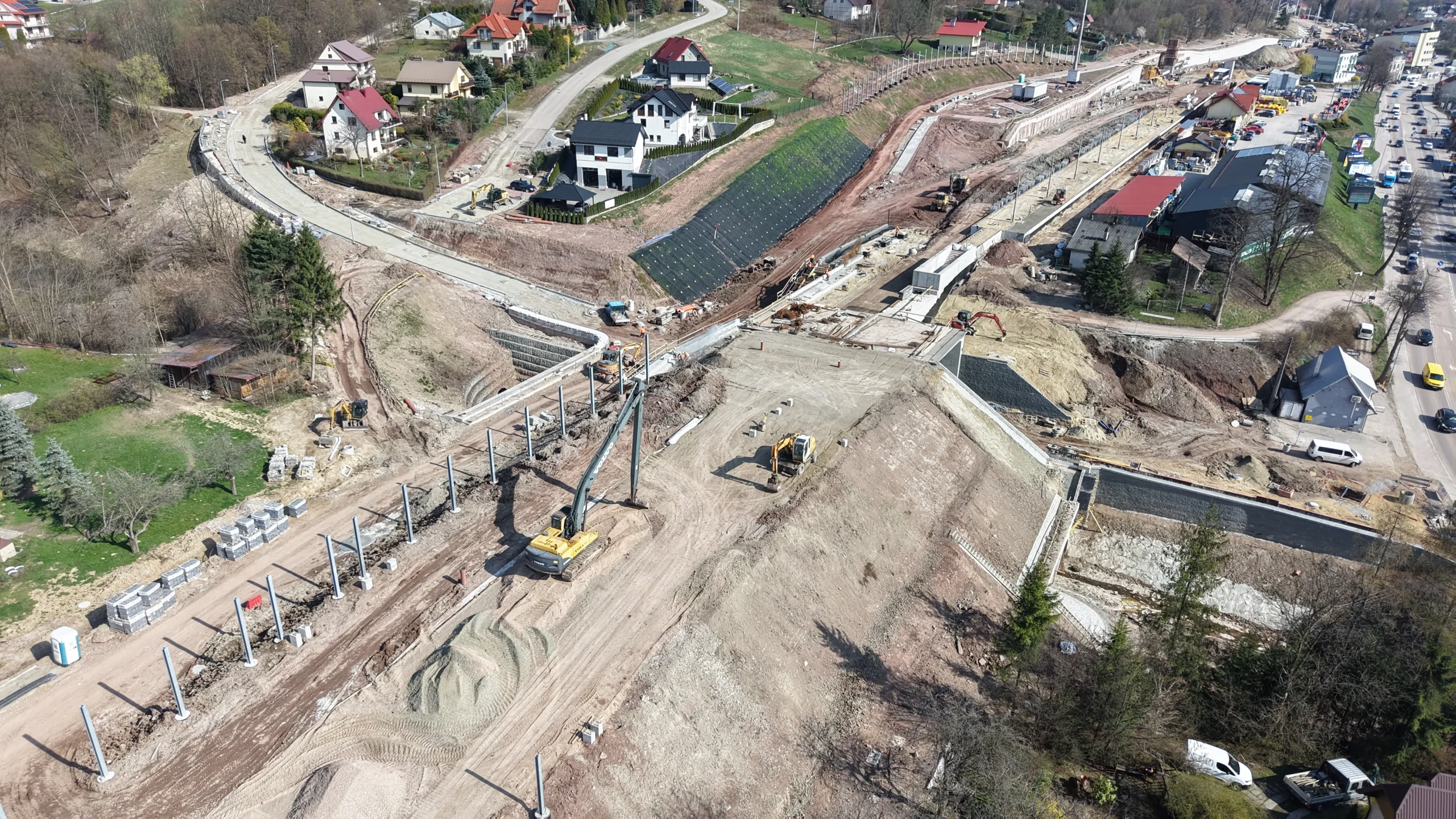 Na terenie budowy prowadzone są intensywne prace ziemne obejmujące: