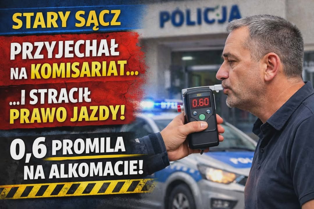 W Starym Sączu policjanci zatrzymali 50-letniego mężczyznę, który przyjechał samochodem na komisariat, będąc pod wpływem alkoholu. Chciał złożyć zawiadomienie o zdarzeniu drogowym, jednak funkcjonariusze od razu wyczuli od niego woń alkoholu.