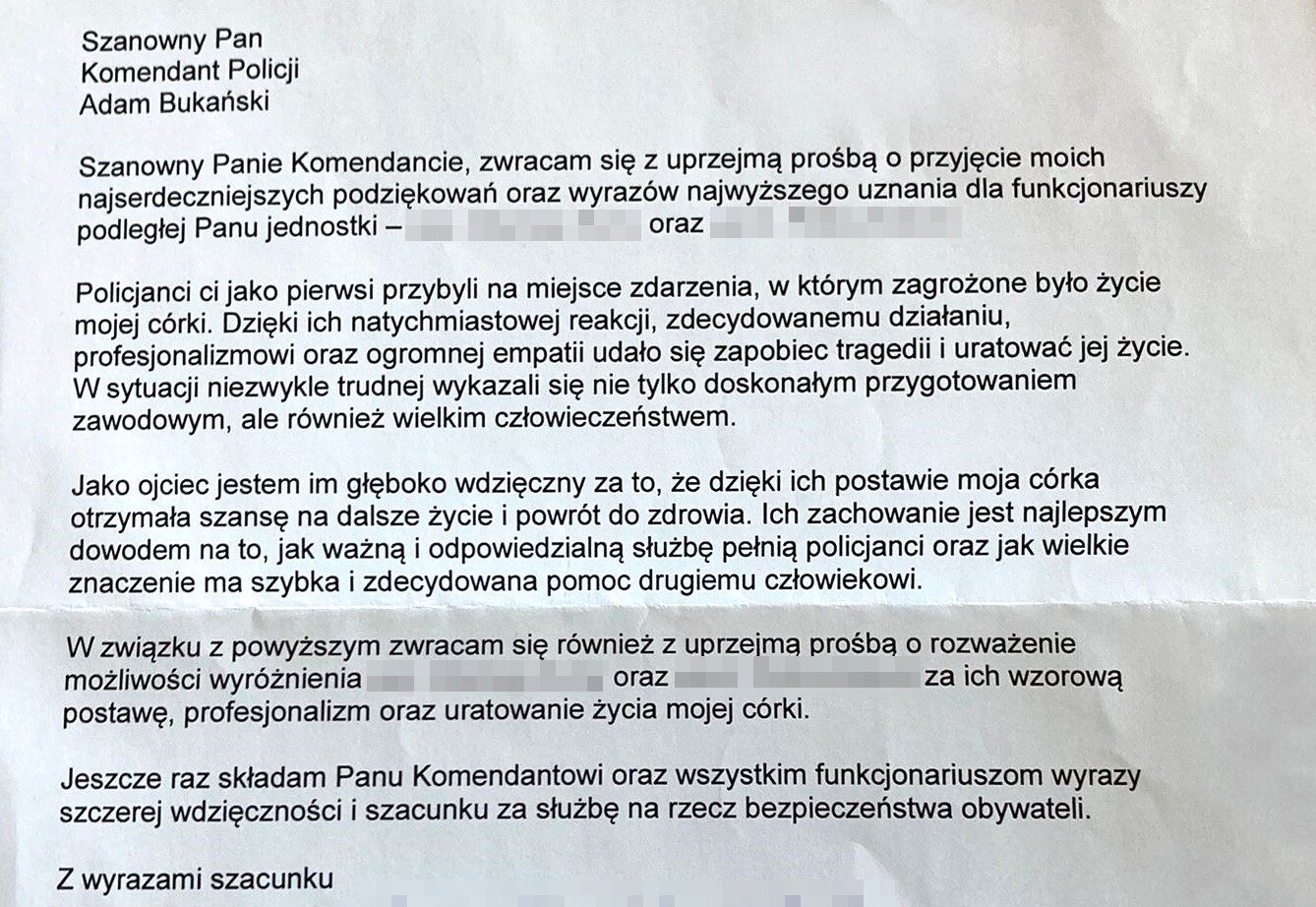 Historię tę poruszająco opisał ojciec dziewczyny, który skierował oficjalne podziękowania do Komendanta Miejskiego Policji w Nowym Sączu. W swoim liście podkreślił nie tylko profesjonalizm funkcjonariuszy, ale przede wszystkim ich ludzkie podejście.