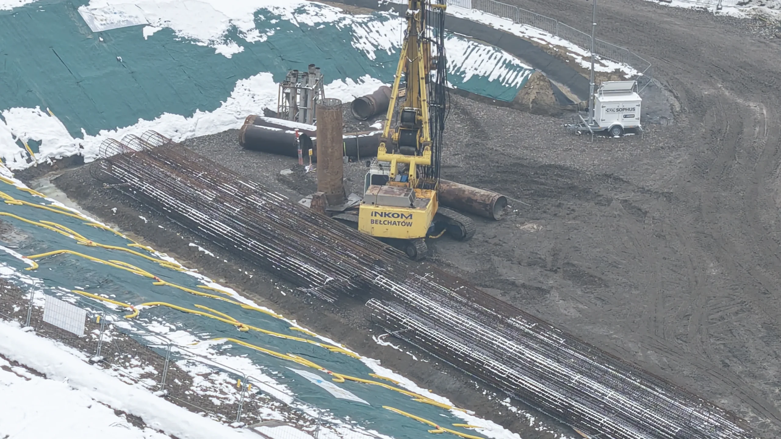 Na placu budowy pojawił się ciężki sprzęt, w tym palownice, koparki i betonomieszarki. Obecnie prowadzone są: