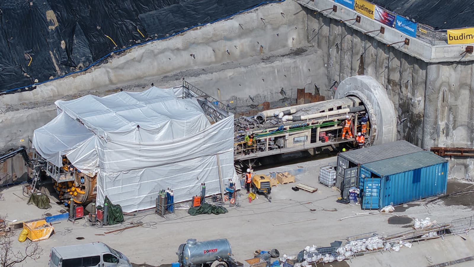 Na pierwszy rzut oka miejsce przebicia wygląda jak typowy plac budowy – betonowy portal, zabezpieczone ściany wykopu, zaplecze techniczne. W rzeczywistości to finał wielomiesięcznej pracy prowadzonej kilkadziesiąt metrów pod ziemią. TBM „Jadwiga”, maszyna o masie przekraczającej 2,5 tysiąca ton i średnicy niemal 11 metrów, rozpoczęła drążenie w czerwcu 2025 roku. Od tego czasu systematycznie przesuwała się przez wymagający, górski górotwór, metr po metrze zbliżając się do miejsca, w którym we wtorek zakończy swoją pracę.