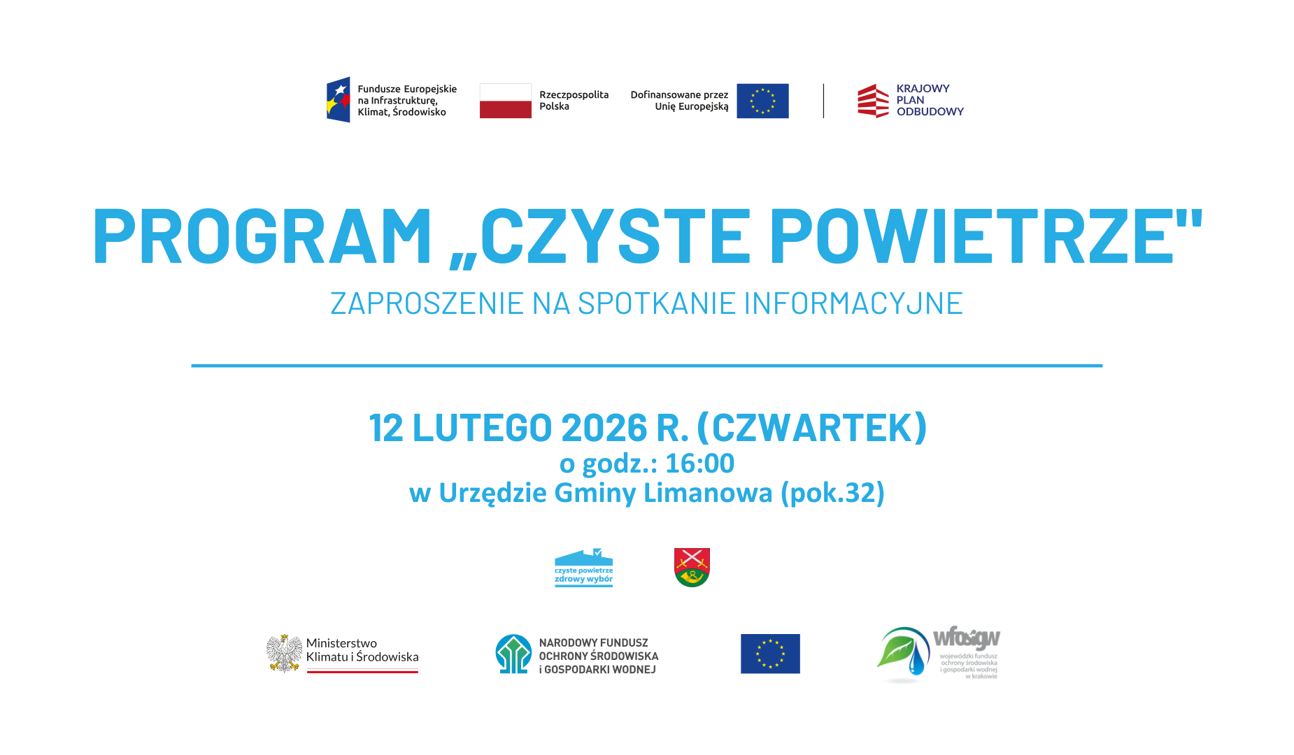Wójt Gminy zaprasza mieszkańców na spotkanie informacyjne dotyczące rządowego Programu „Czyste Powietrze”, którego celem jest wsparcie finansowe m.in. wymiany źródeł ciepła oraz termomodernizacji budynków mieszkalnych.